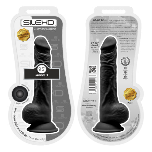 SilexD 9.5 inch Realistic Silicone Dual Density Dildo with Suction Cup with Balls Black