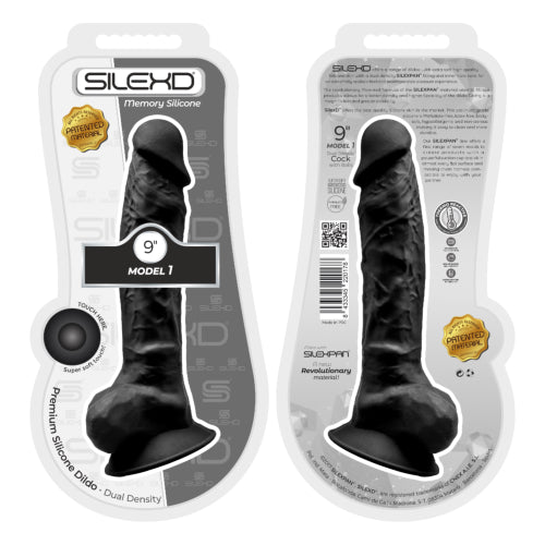SilexD 9 inch Realistic Silicone Dual Density Dildo with Suction Cup with Balls Black