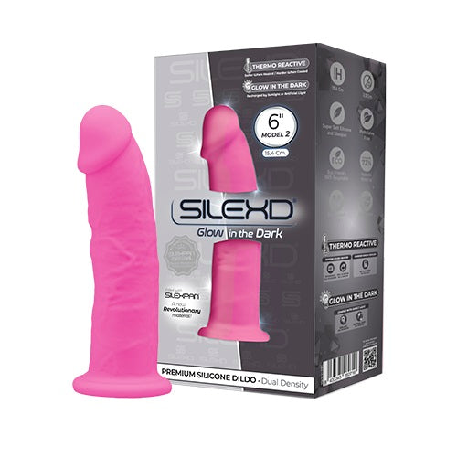 SilexD 6 inch Glow in the Dark Realistic Silicone Dual Density Dildo with Suction Cup Pink